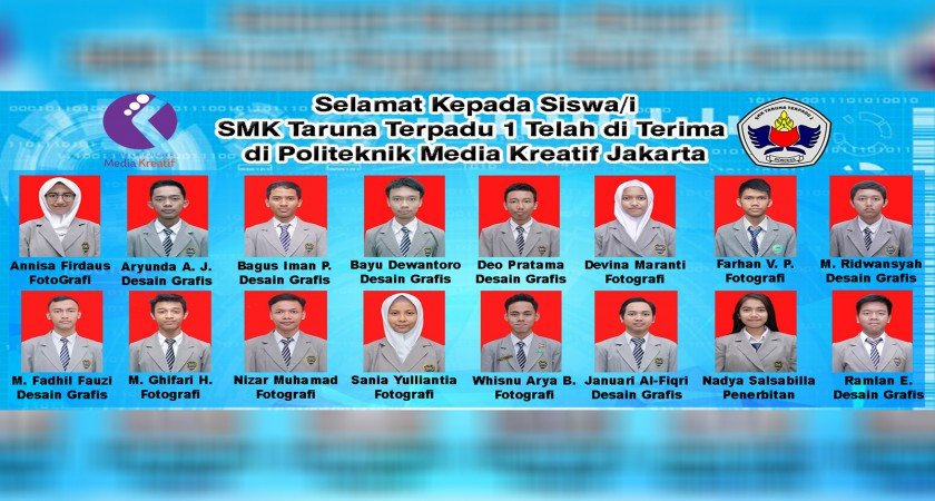 Selamat Kepada 16 siswa/i SMK Taruna Terpadu 1 Berhasil Masuk Politeknik Media Kreatif Jakarta