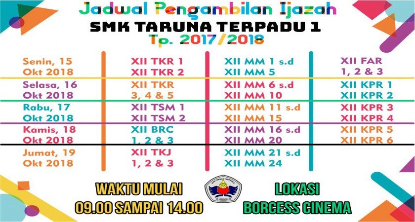 Berikut ini adalah Jadwal Pembagian Ijazah Untuk Alumni Tp. 2017/2018